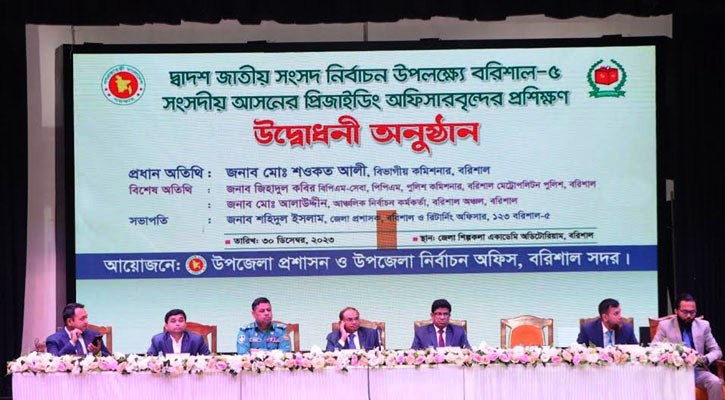 দ্বাদশ জাতীয় সংসদ নির্বাচন উপলক্ষে বরিশাল-৫ সংসদীয় আসনের প্রিসাইডিং কর্মকর্তাদের প্রশিক্ষণ কর্মশালার উদ্বোধন করা হয়েছে। শনিবার (৩০ ডিসেম্বর) সকাল ১০টার দিকে উপজেলা প্রশাসন ও উপজেলা নির্বাচন অফিস বরিশাল সদরের আয়োজনে জেলা শিল্পকলা একাডেমি মিলনায়তনে এ কর্মশালার উদ্বোধন করা হয়।