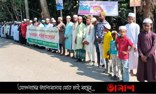 ফিলিস্তিনে ইসরায়েলি গণহত্যা বন্ধের দাবিতে বরিশাল সদর উপজেলার চরবাড়ীয়া ইউনিয়নে মানববন্ধন করেছেন গাজীর খেয়াঘাট মাদ্রাসা ও এলাকাবাসী।